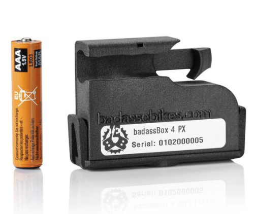 BadassBox 4 Pendix con batería AAA y tornillo de mariposa. Tenga en cuenta que el imán de radio original de su bicicleta eléctrica es adecuado para este producto, por lo tanto, solo incluimos un tornillo de mariposa.