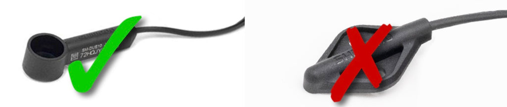 Ahora puedes conectar el adaptador universal con el sensor Shimano montado* en la vaina con las bridas suministradas.