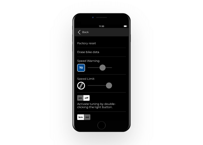 This tuning chip is also very easy to control. If the lights are turned off, SpeedBox is activated. The chip can be easily deactivated by turning on the lights. A new feature in this SpeedBox version is the possibility of activating the double-click function in the app (only for displays that have a LIGHT button – E5003, E5000, E6010, E6100). By activating this function, the lights become independent of tuning. By double-clicking on the LIGHT button, the lights will flash, and the tuning will turn on. If you double-click on the button again, the tuning will turn off and the e-bike will work the same as without a chip.