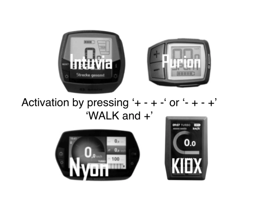 For Bosch ebikes without a WALK button, there is also the option to switch the SpeedBox ON or OFF by just pressing the + – + – key combination.