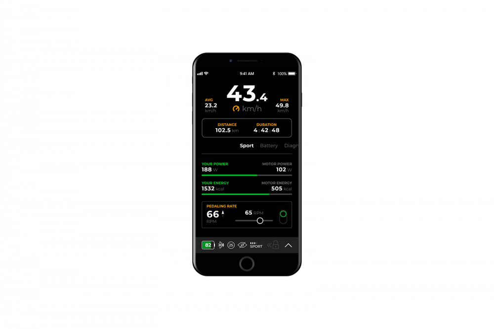 SpeedBox App is an application specially designed for SpeedBox 3.2 B.Tuning, which uses Bluetooth technology to connect your e-bike to your mobile application. After downloading the application and connecting your mobile phone to your e-bike you will see current data and trip parameters displayed on your phone. Individual trips can be stored so that the results can be compared with friends and together they can monitor their performance. So just enjoy the ride and leave checking the parameters for later!
