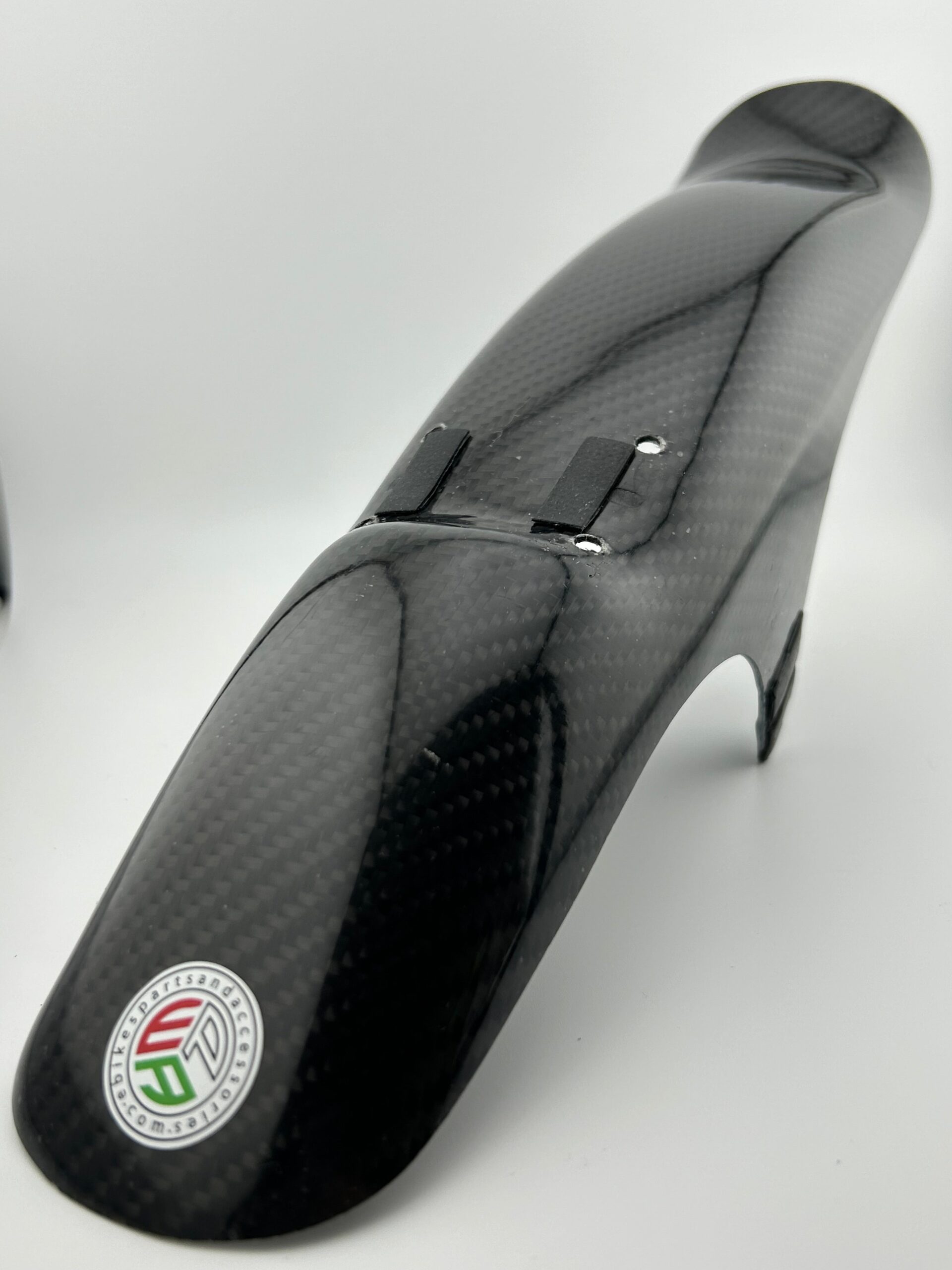 The rear carbon fiber mudguard comes un-drilled as opposed to being peppered with fixing holes, this is so the guard can be fitted as needed whilst retaining its looks, will require drilling with a 5mm Brad point/ Lip and Spur bit for a neat cut.